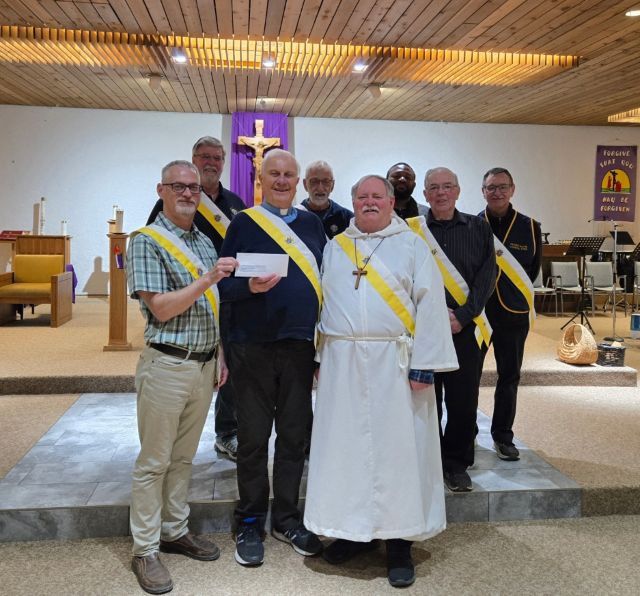 The cheque presentation from our calendar sales to the Church of Our Lady, Moose Jaw.